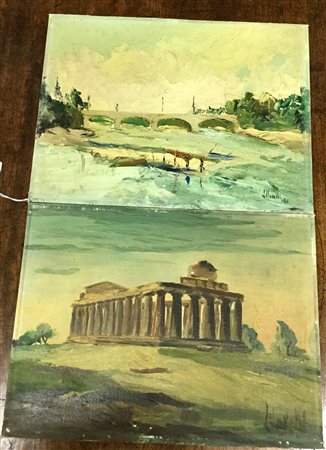 "Paesaggi" coppia di olii su cartone telato (cn 30x40), firmati in basso a destra