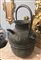 Acquamanile in rame decorato ad animali fantastici, mascherone e volute. Ansa sagomata terminante a riccioli. Secolo XVII (h. cm 41) (difetti)