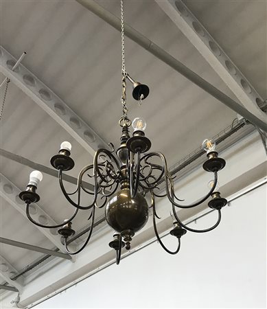 Lampadario "olandese" a otto fiamme in bronzo (difetti)