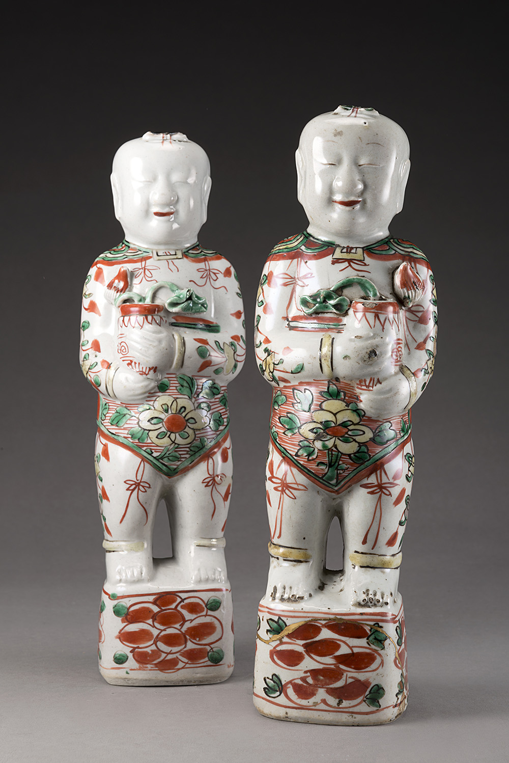 Pair of Chinese Famille Verte figures of boys. Kangxi period (1662-1722)