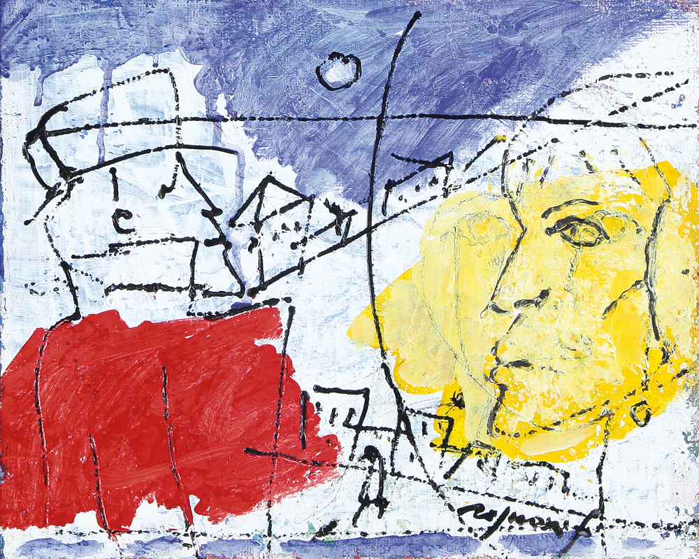 FRANCO ROGNONI Milano 20/09/1913 - Milano 11/03/1999 Città olio su tela cm. 33x41, firma in basso a destra, titolo, firma, timbro ed etichetta della Galleria Il Chiostro Arte Contemporanea (Saronno), mostra "Franco Rognoni, Pittura, lo sguardo, la frase infinita" tenutasi dal 10 ottobre al 15 novembre 1998 al retro, pubblicato sul relativo catalogo, dichiarazione d'autenticità a cura della moglie Mariuccia Rognoni Noè su foto.