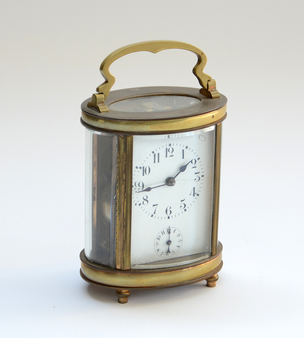 Orologio officier a base ovale in ottone e vetri molati