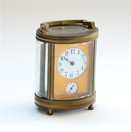 ANONIMO Orologio officier a base ovale in ottone e vetri molatiEpoca inizio...