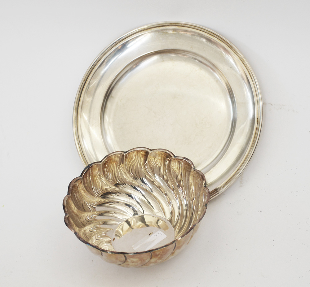 Lotto composto da una ciotola sagomata e un piatto liscio in argento (gr. 1000)