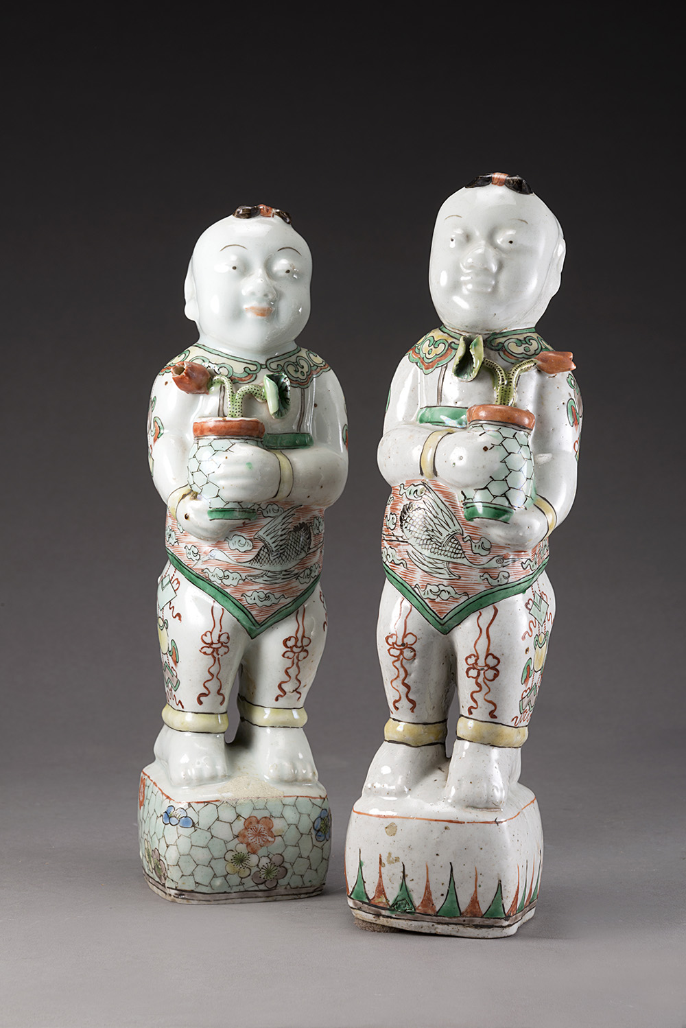Pair of famille verte figures of boys. China, Kangxi period (1662-1722)