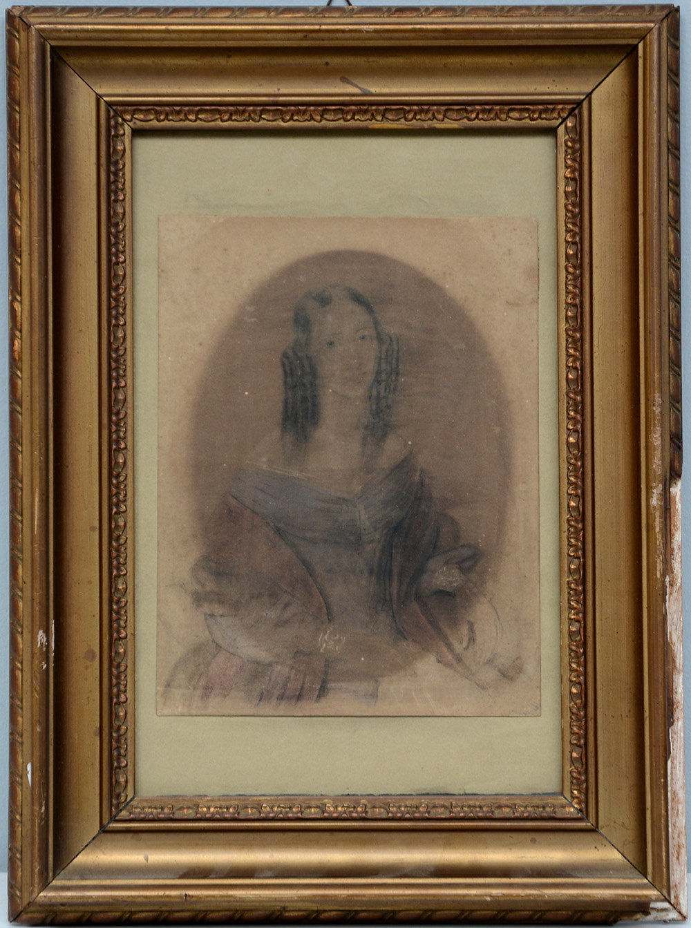 Ignoto, secolo XIX "Ritratto di dama" tecnica mista su carta (cm 27x19) (gravi difetti)