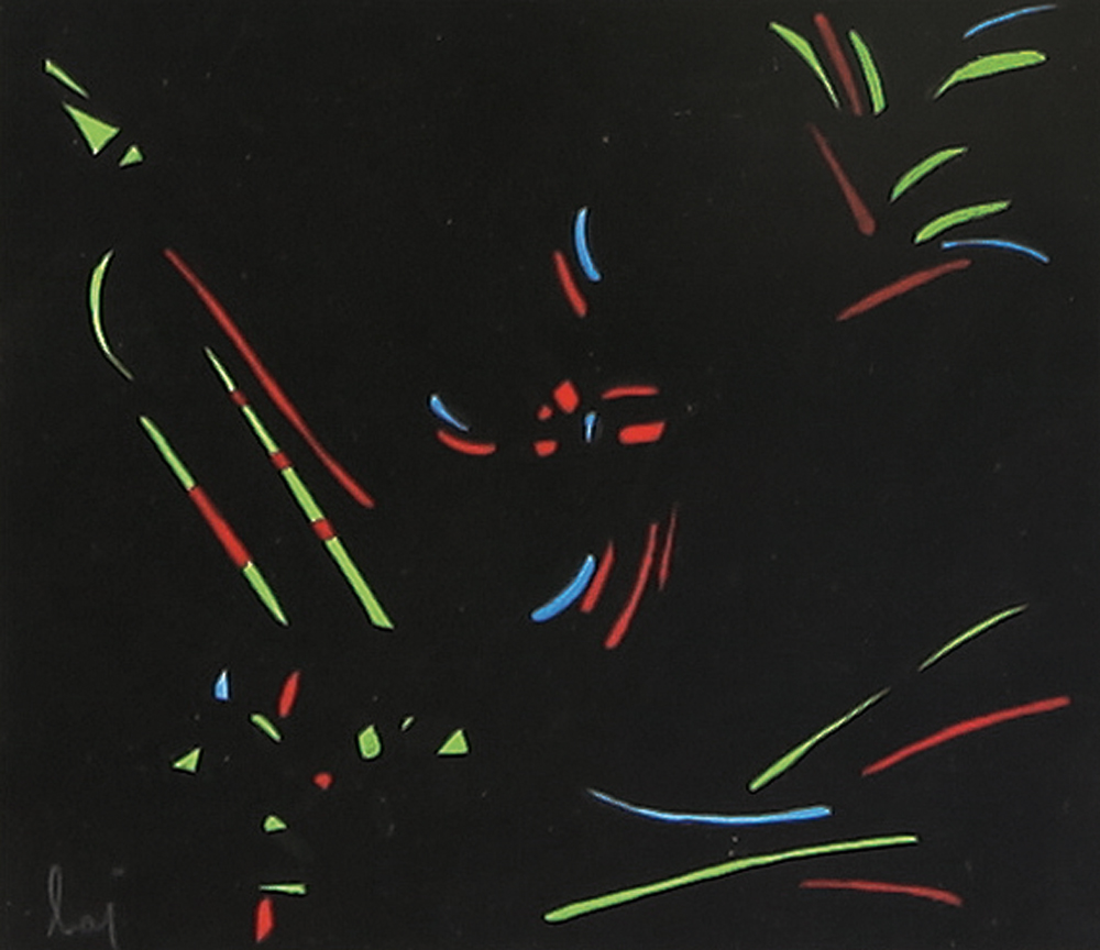 ENRICO BAJ Milano 31/10/1924 - Varese 15/06/2003 Senza titolo, (1949) tecnica mista su cartoncino cm. 12x14, firma in basso a sinistra, dichiarazione d'autenticità dell'artista su foto.