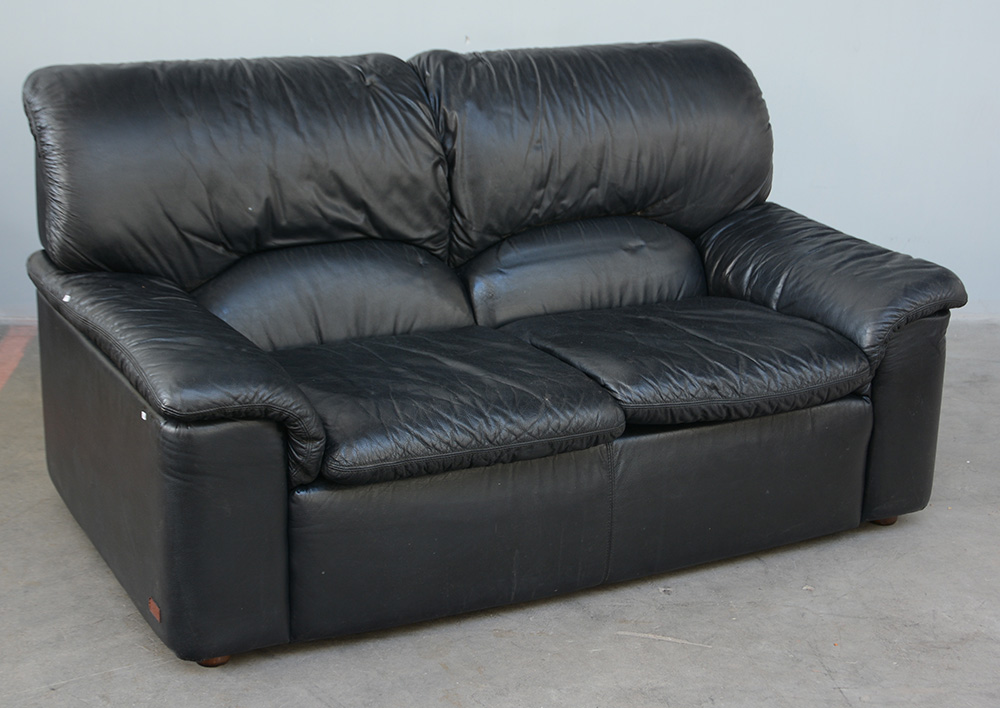 Divanetto a due posti rivestito in pelle nera (difetti)