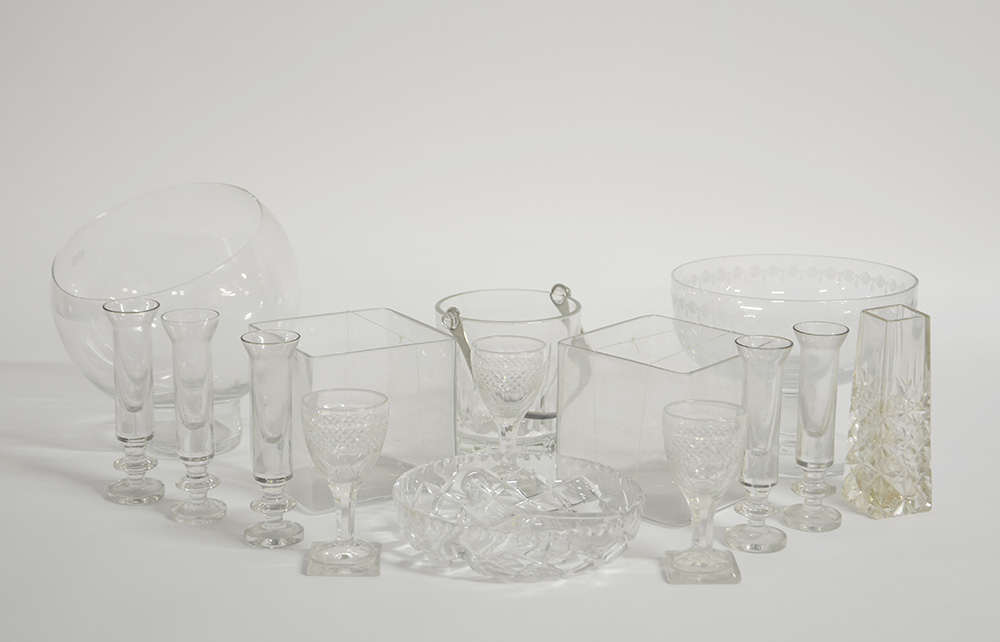 Lotto composto da numerosi oggetti diversi in vetro e cristallo (difetti)