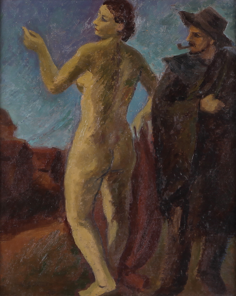VIRGILIO GUZZI Molfetta (Ba) 23/12/1902 - Roma 09/11/1978 L'uomo che guarda, 1935 olio su tela cm. 27,5x22,5; firma e anno in basso a sinistra.