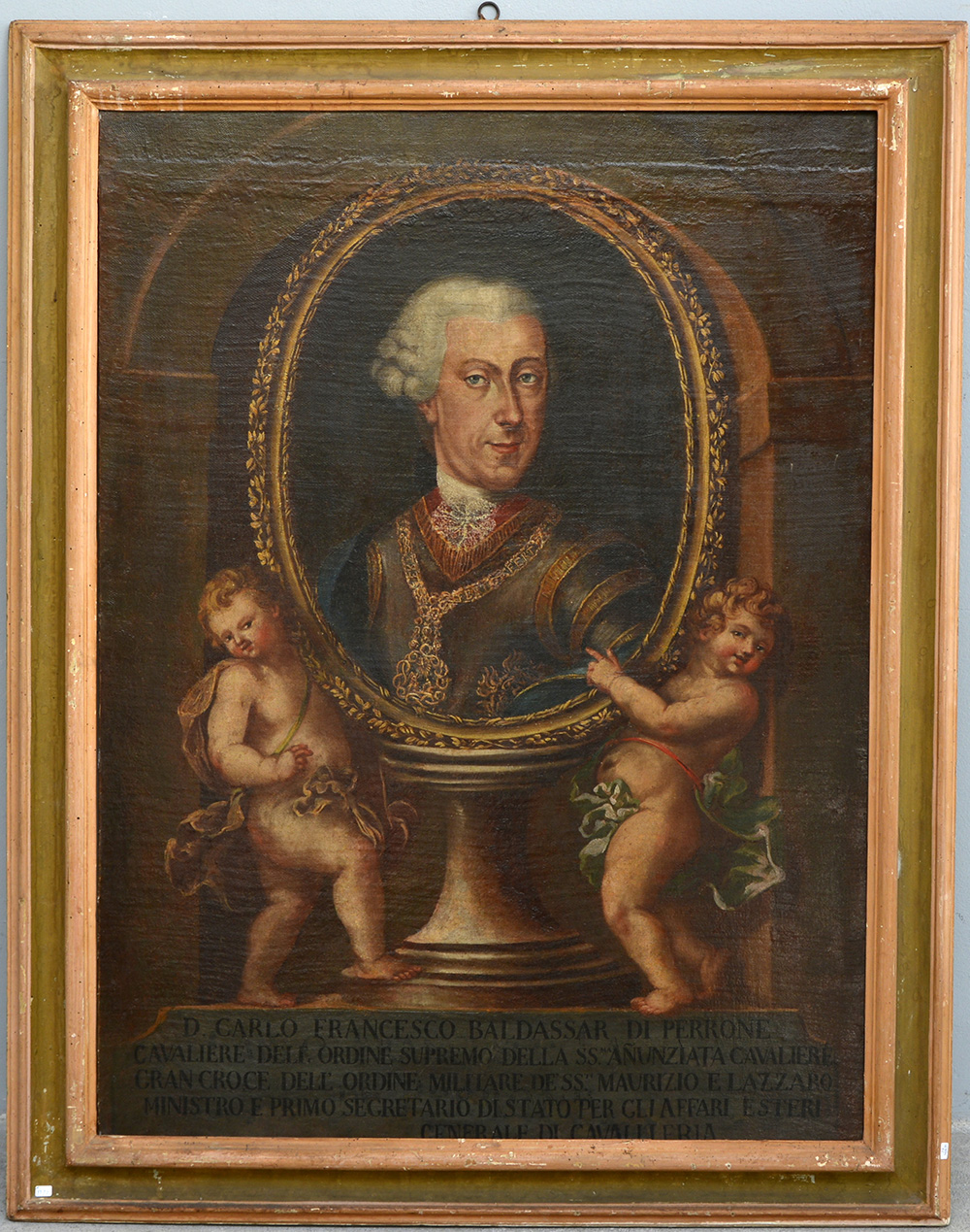 Ignoto del secolo XVIII, ''Ritratto di Carlo Francesco Baldassarre Perrone'' olio su tela (cm 102x77) in cornice (difetti e restauri)
