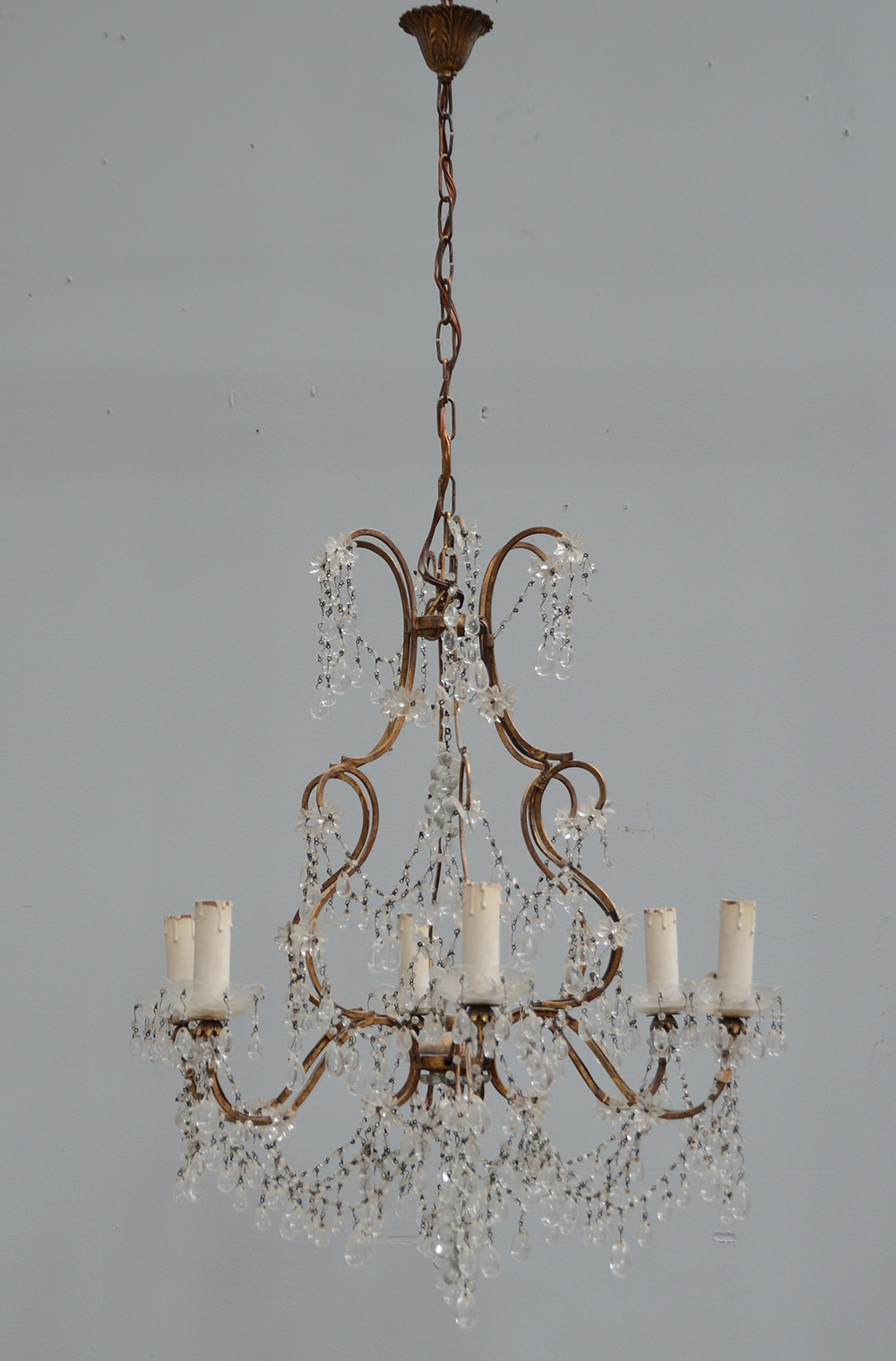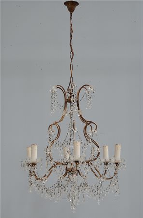 Lampadario a sei luci con struttura in metallo e pendagli in cristallo (difetti)