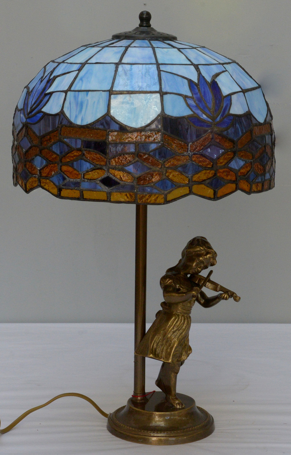 Lampada da tavolo in fusione di bronzo e vetro opaco. Produzione recente. (h cm 51)
