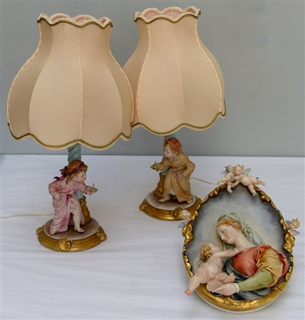 Lotto composto da una coppia di abat-jour ed una placca ovale in ceramica...