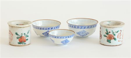 Lotto composto da tre ciotoline in porcellana e due piccoli contenitori con...