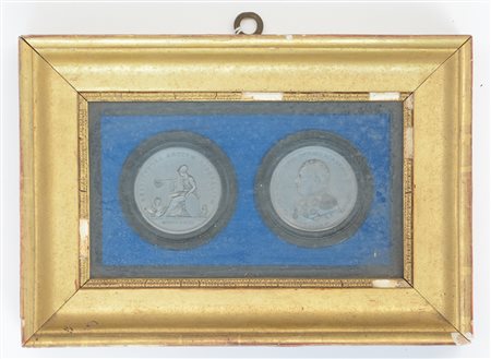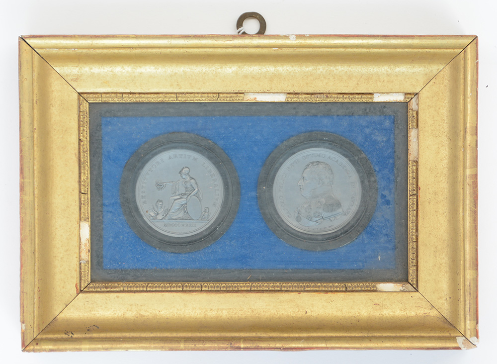 Amadeo Domenico Lavy (Torino 1777-1864) Due medaglie a ricordo del ripristino dell'Accademia di Belle Arti 1823. Incorniciate fronte e retro (difetti)