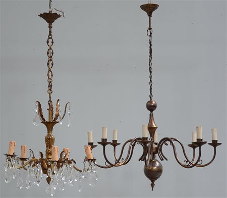 Lotto composto da un lampadario in stile olandese a otto luci e uno a sei...