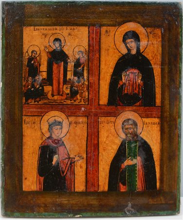 Icona ad olio su tavola raffigurante Santi. Secolo XIX (cm 36x30) (difetti e restauri)