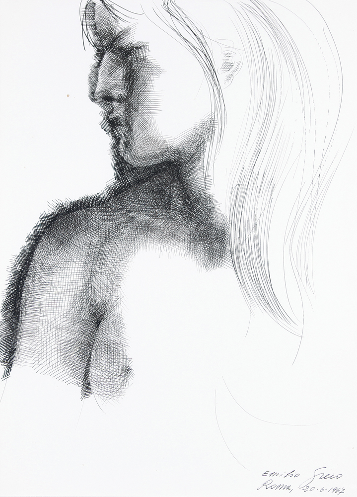 EMILIO GRECO Catania 1913 - Roma 05/04/1995  Busto di donna, 1967 china su carta cm. 70x50, firma, anno e località (Roma) in basso a destra, opera esposta presso la Washington Irving Gallery (New York) come da cartiglio al retro, dichiarazione d'autenticità a cura di Antonella Greco su foto con lettera accompagnatoria degli Archivi Emilio Greco (Roma) allegata.