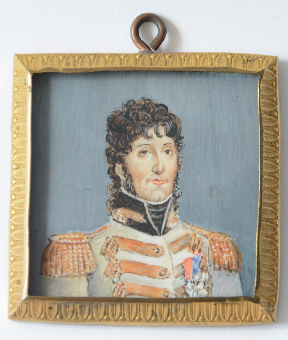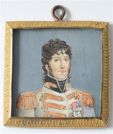 Miniatura su avorio raffigurante un alto ufficiale del periodo Napoleonico in cornice di bronzo dorato.