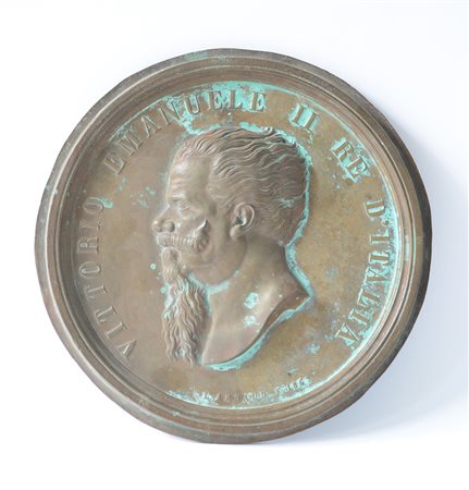 Interessante placca in bronzo con effige di Vittorio Emanuele II Re d'Italia.