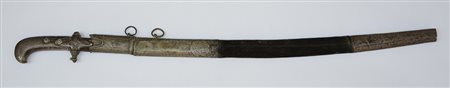 Sciabola orientale con impugnatura a pistola ricoperta d'argento a tratti inciso.