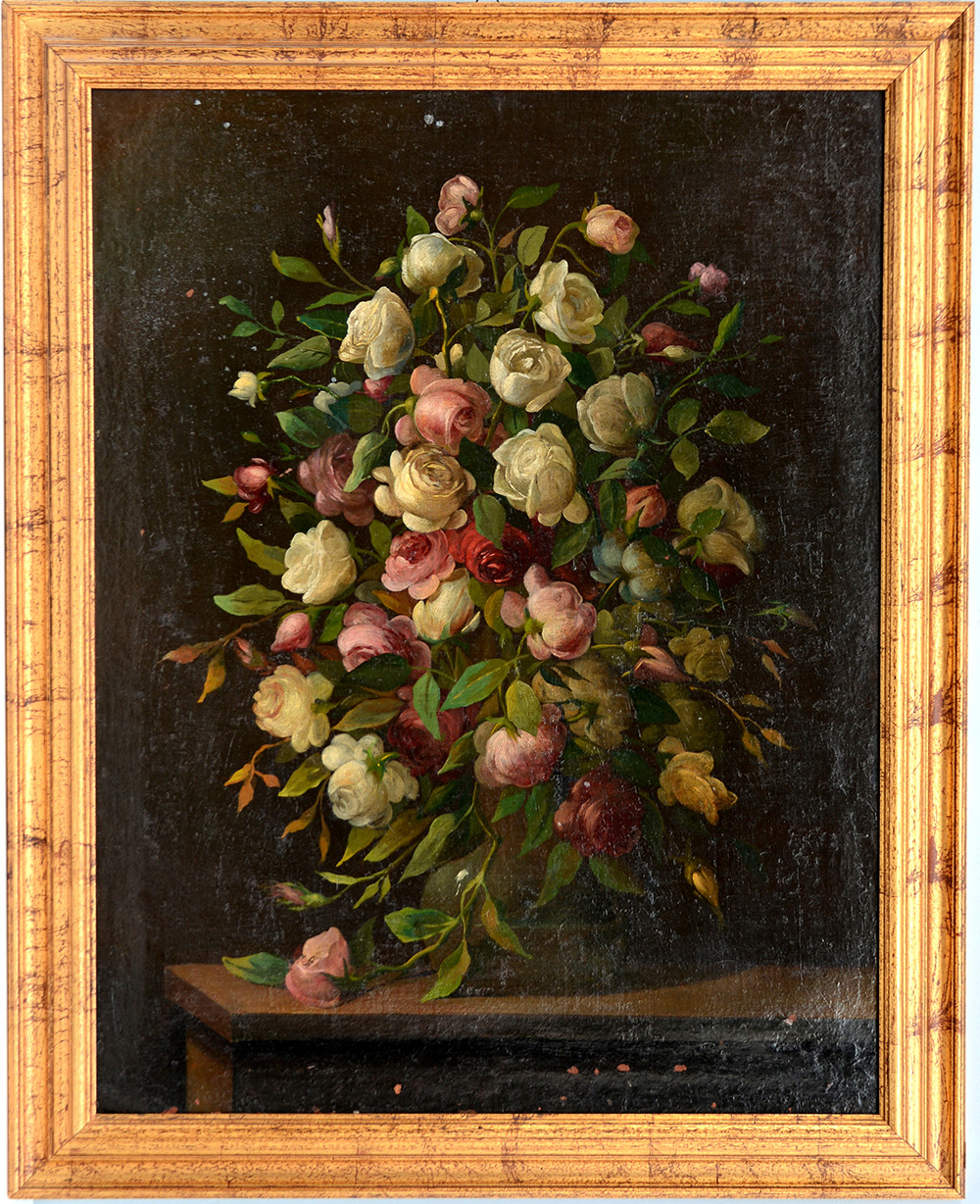 Ignoto del secolo XIX "Natura morta di fiori" olio su tela (cm 83x64,5) In cornice (difetti)