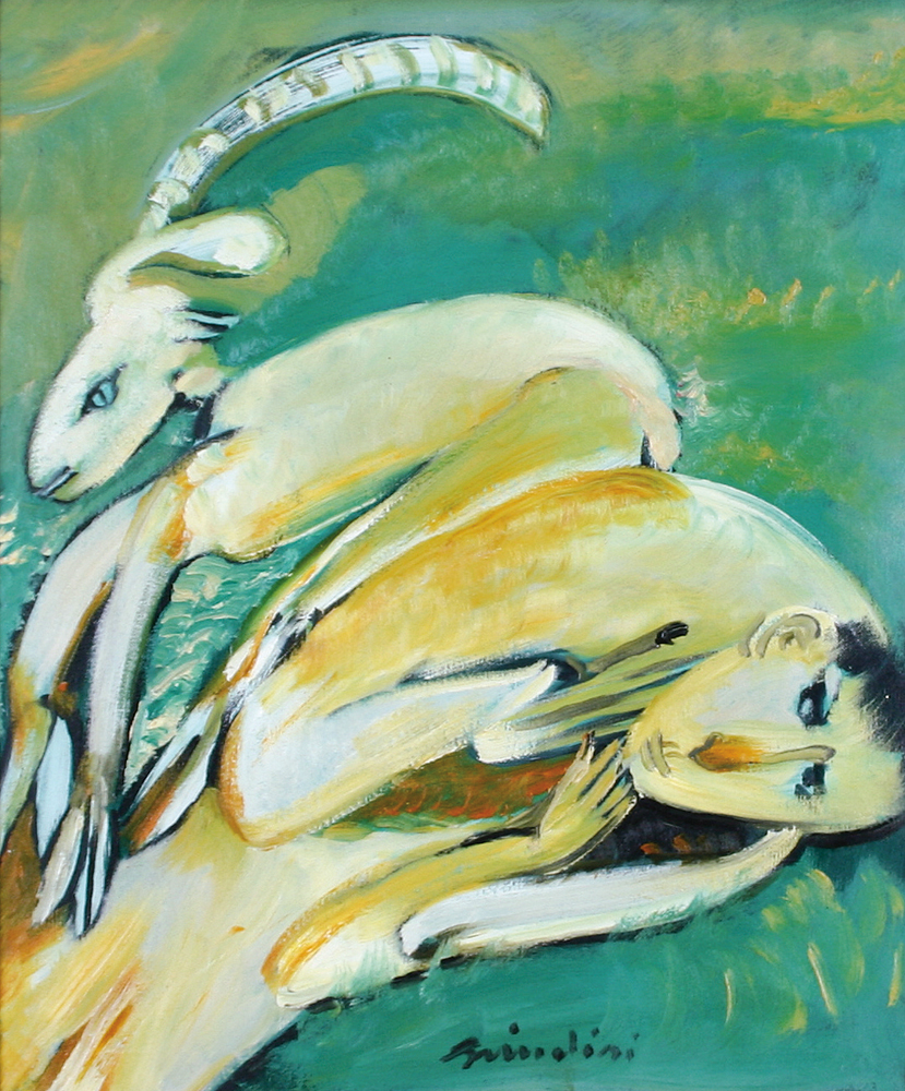 REMO BRINDISI Roma 25/04/1918 - Milano 25/07/1996 Pastorale, anni '90 olio su tela cm. 60x50, firma in basso a destra, firma e archivio numero 3239 al retro, dichiarazione d'autenticità dell'artista e archivio numero 3239 a cura della Galleria d'Arte Pace (MI) su foto, pubblicato sul "Catalogo Generale delle Opere Remo Brindisi", II volume a cura della Galleria d'Arte Pace a pagina 268 e con tavola a colori a pagina 360.