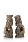 Coppia di sculture in legno raffiguranti leoni buddhisti su basi rettangolari (difetti)