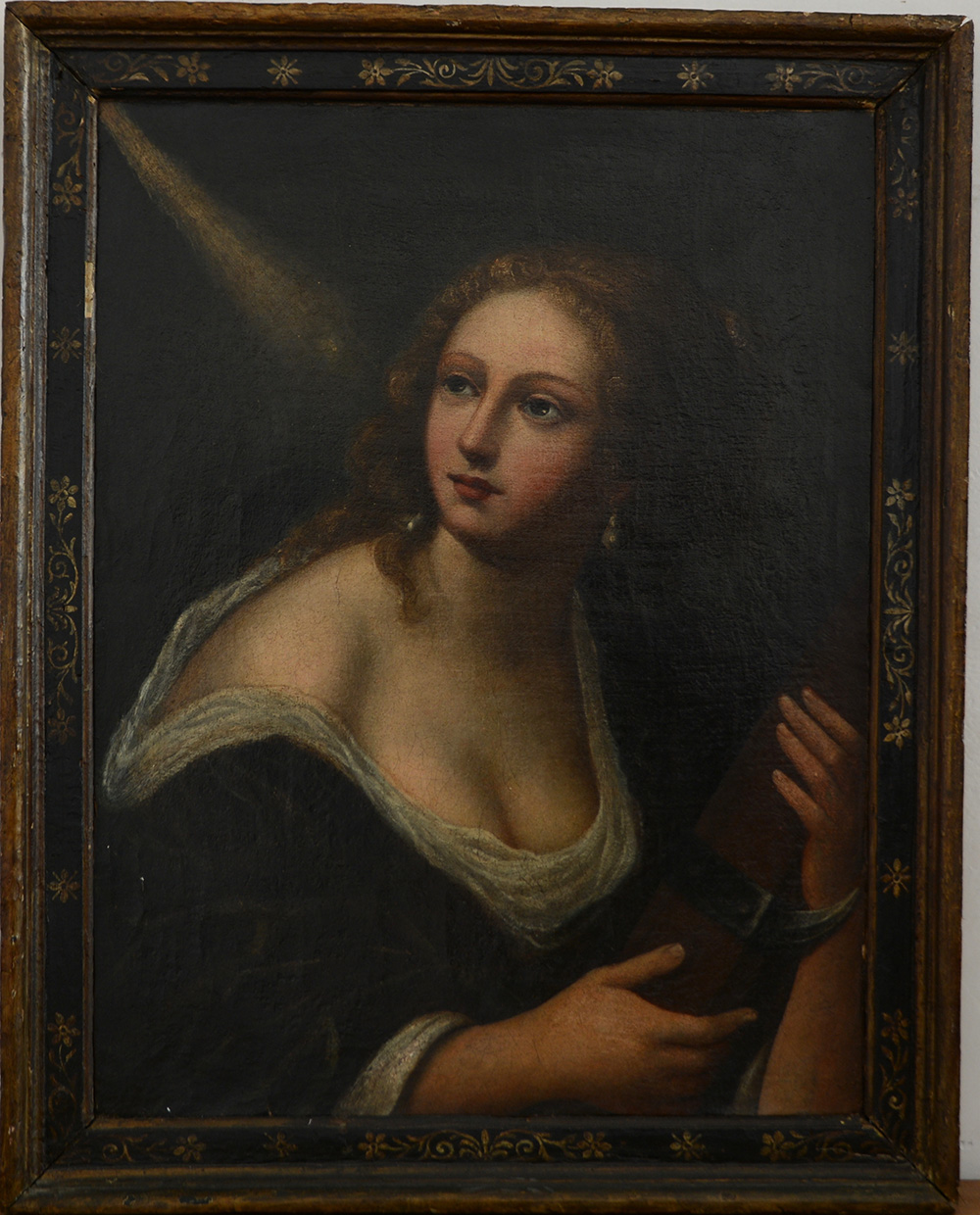 Scuola veneta del secolo XVIII "Santa Caterina d'Alessandria" Olio su tela (cm 64,5x49,5) In cornice (difetti e restauri)