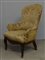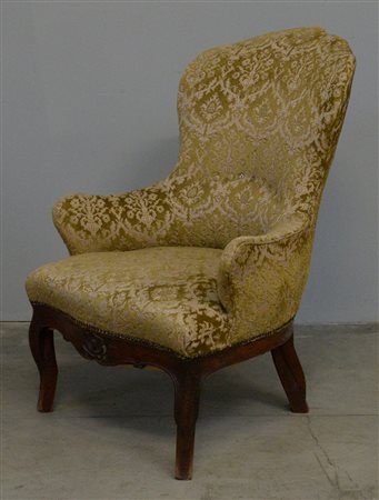 Poltrona con struttura in legno e rivestimento in tessuto operato. (difetti e restauri)
