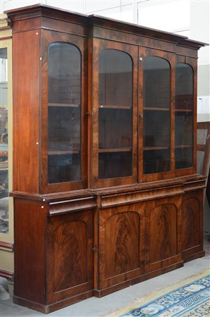 Libreria con parte superiore a quattro ante e parte inferiore lastronata a...