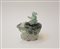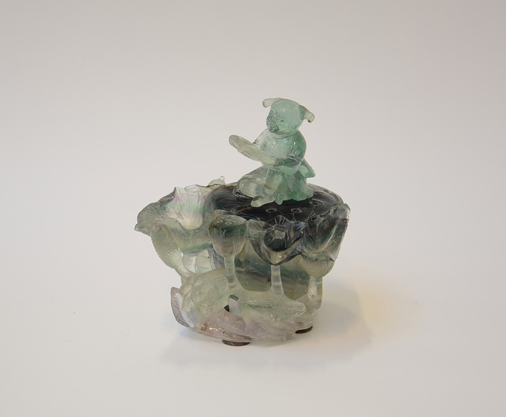 Incensiere in quarzo verde a forma di fiore di loto con coperchio a guisa di fanciullo con libro (lievi difetti)