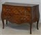 Comò a due cassetti di forma mossa con intarsi romboidali. (cm 110x80x45)...