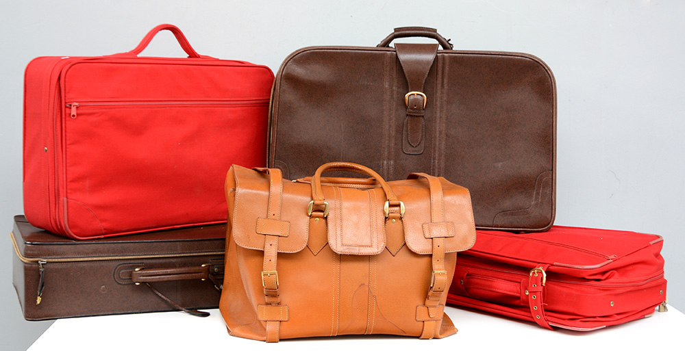 Lotto composto da cinque valige di diversa epoca, decoro e materiale