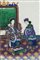 Coppia di dipinti su carta di riso raffigurante coppie di mandarini in scene di interni, con cornice