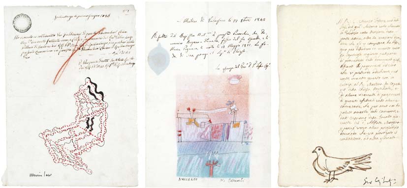 MESCIULAM P. - CANUTI N. - CELIBERTI G. Soggetti vari lotto di tre tecniche miste su carta antica, 27x20 - 28.5x19 - 29x20 tutti firmati