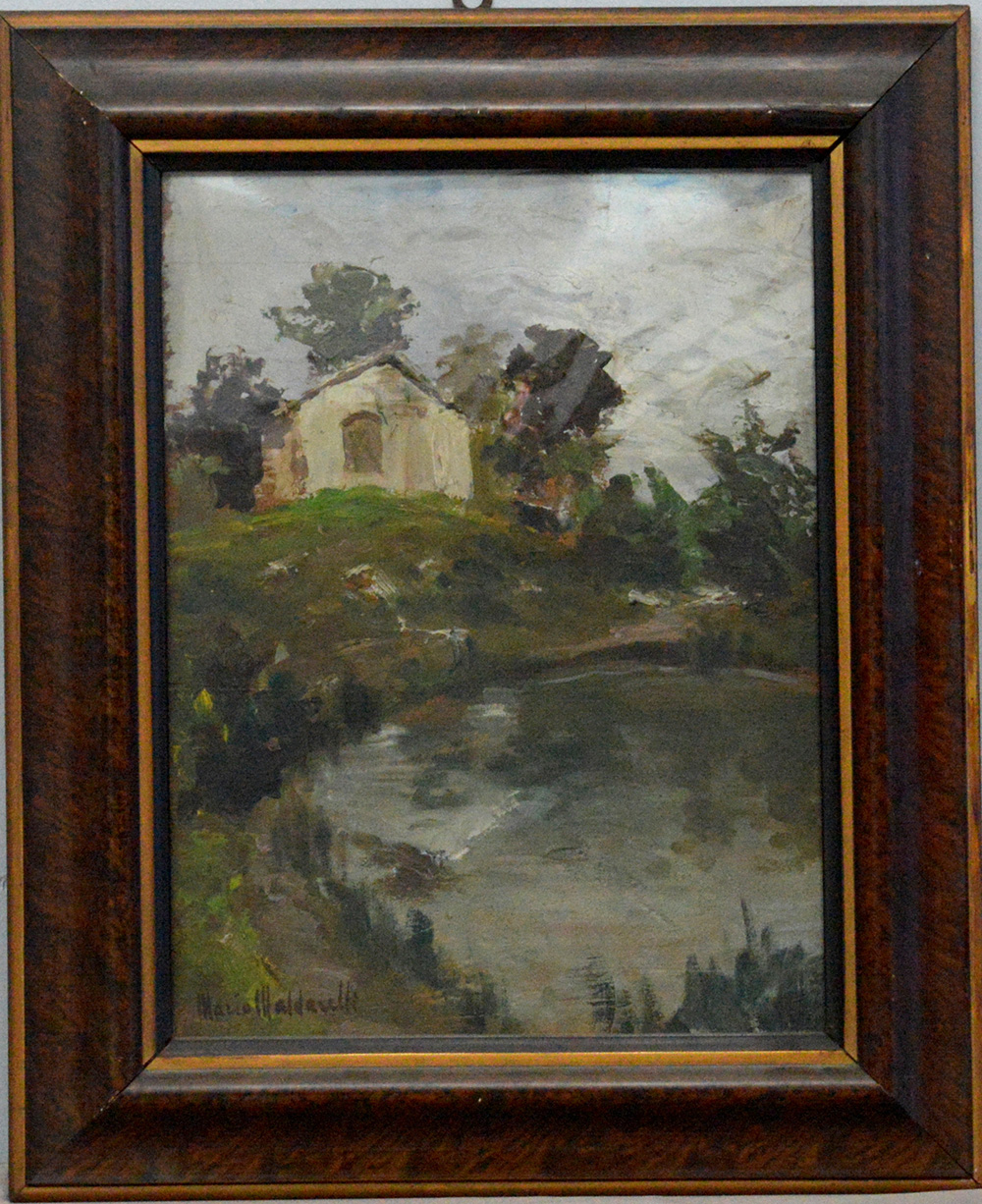 Mario Maldarelli “Paesaggio con casolare e corso d’acqua” olio su compensato...