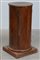 Comodino a colonna ad un'anta lastronato in noce e radica di noce. Base...