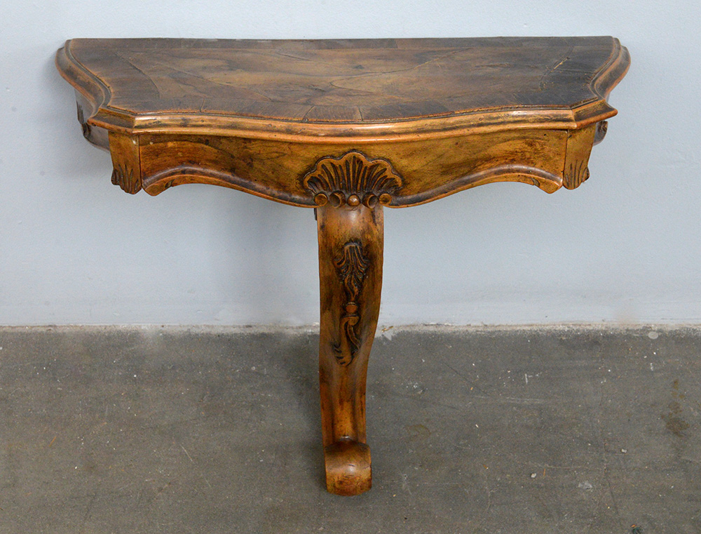 Mensola pensile di forma sagomata con cassettino sottopiano. (cm 53x48x26) (difetti)