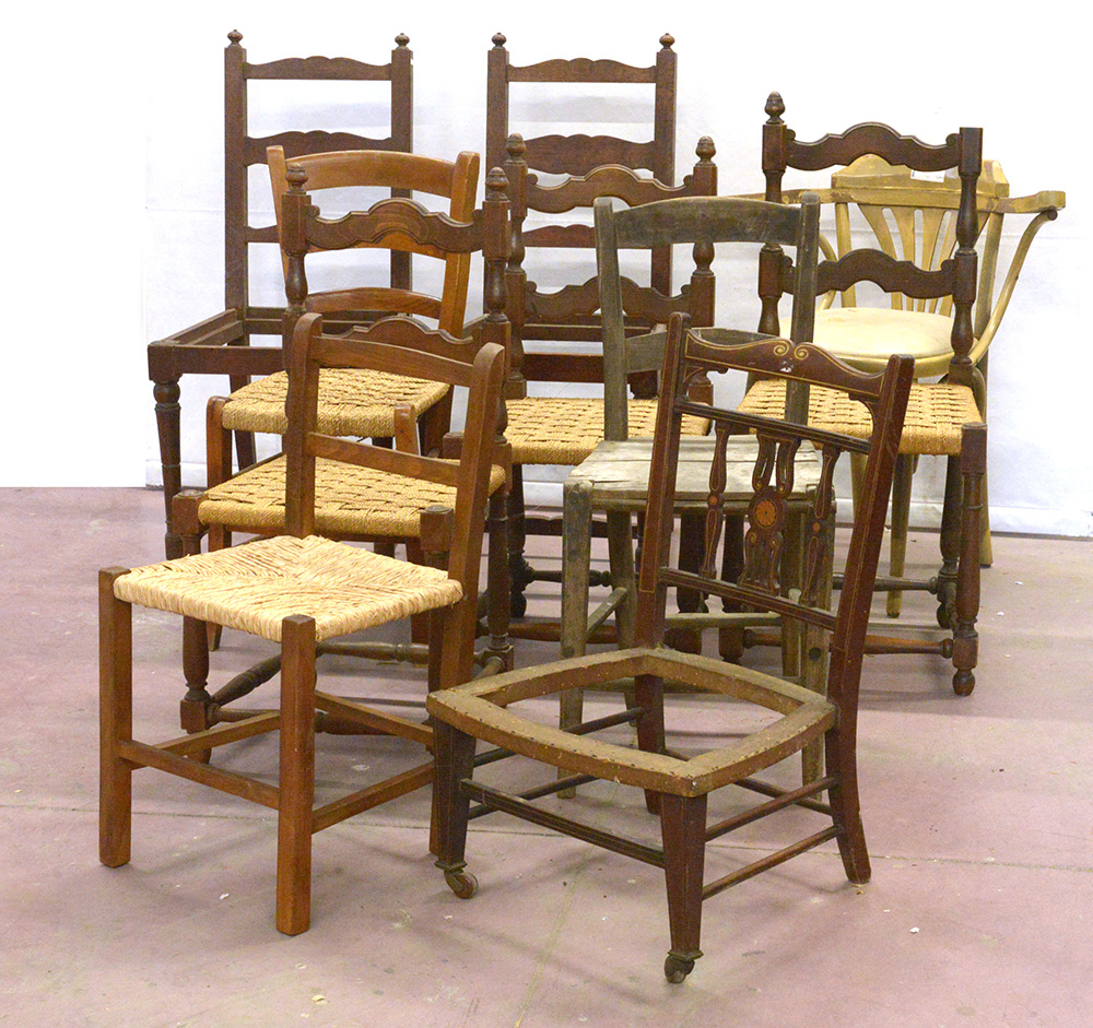 Lotto composto da dieci sedie diverse (difetti e mancanze)