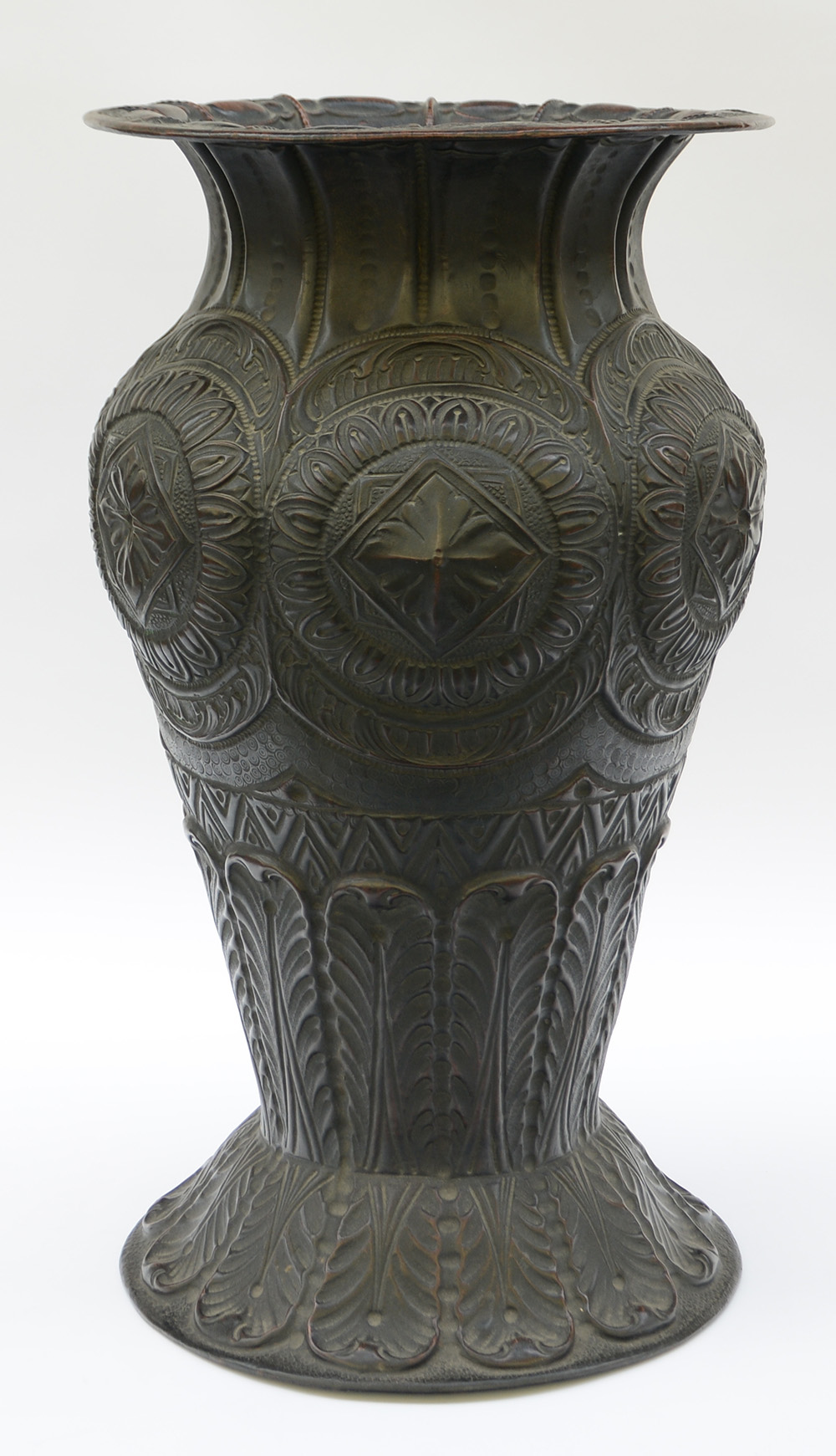 Grande vaso portaombrelli in rame sbalzato a bugne, palmette e fregi vari (h...