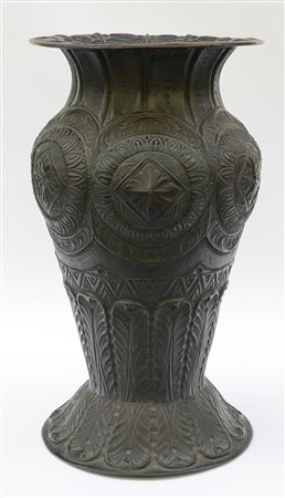 Grande vaso portaombrelli in rame sbalzato a bugne, palmette e fregi vari (h cm 64)