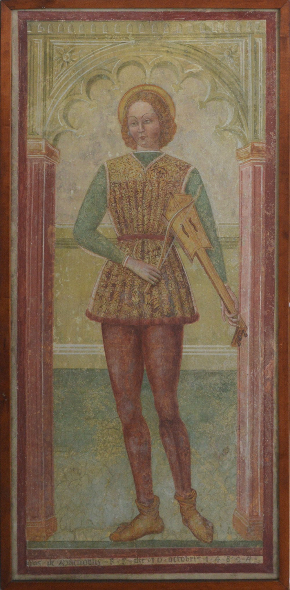 Ignoto del secolo XX "Ritratto di suonatore" strappo d'affresco (cm 170x80) In cornice (difetti)