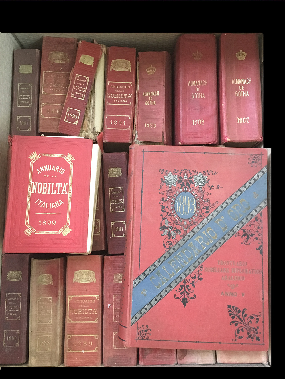 [ARALDICA] - Annuario della Nobilta' Italiana. Bari: Direzione del Giornale Araldico, alcune annate fra il 1976 e il 1899. 21 volumi in tela originale rossa decorata in oro. [INSIEME A:] 3 almanacchi dei Gotha. Non collazionato e difetti da esaminare.
