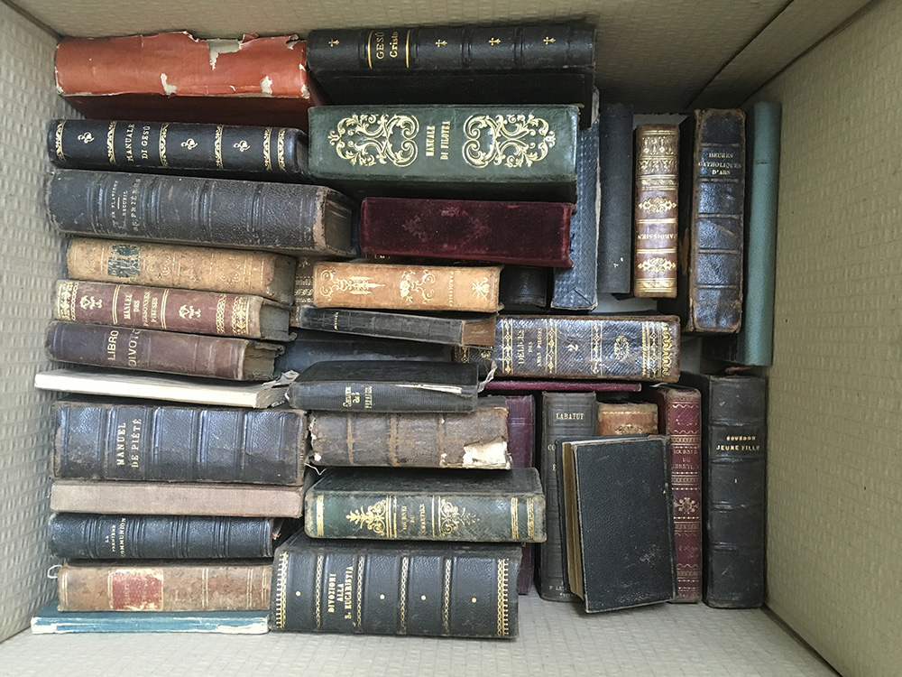 [BREVIARI] 2 cartoni contenenti numerosi breviari e libri di preghiere in...