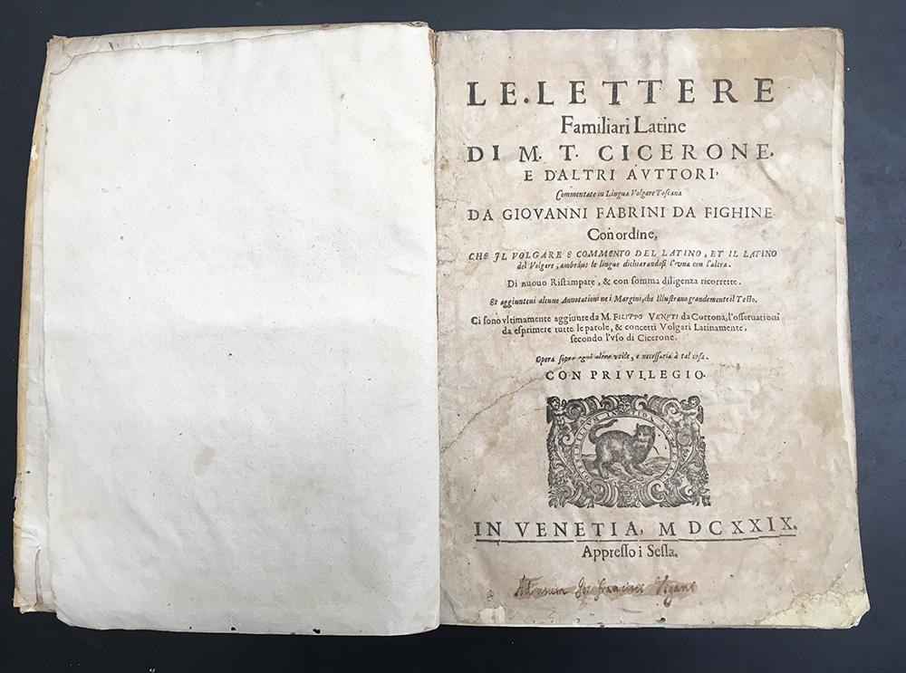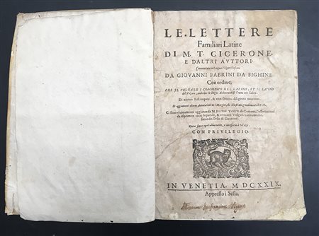 CICERONE. Le Lettere Familiari Latine. Venezia: Sessa, 1629. Folio,...