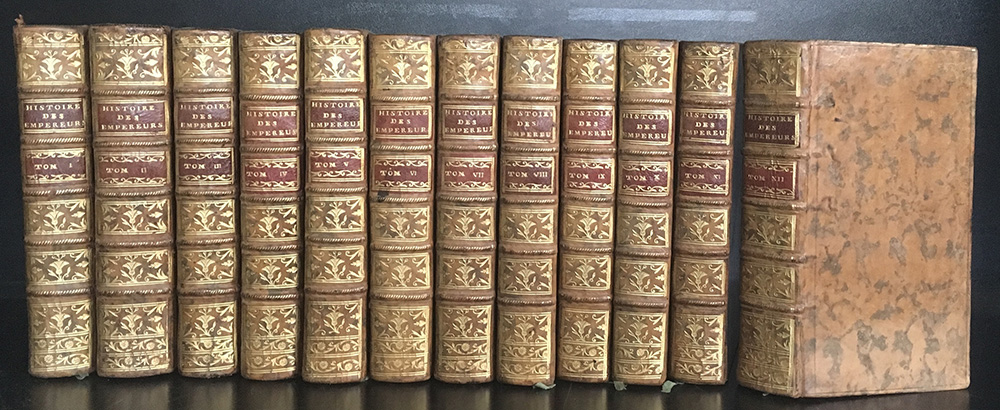 CREVIER, JB.L. Histoire des Empereurs Romains, depuis Auguste jusqu'à Constantin. Paris: Desaint & Saillant, 1749-1755. 12mo, 12 voll. 5 carte geografiche più volte ripiegate. Legaura coeva in piena pelle con titolo e decori in oro al dorso. buona copia in ottima legatura. Non collazionato e difetti da esaminare.