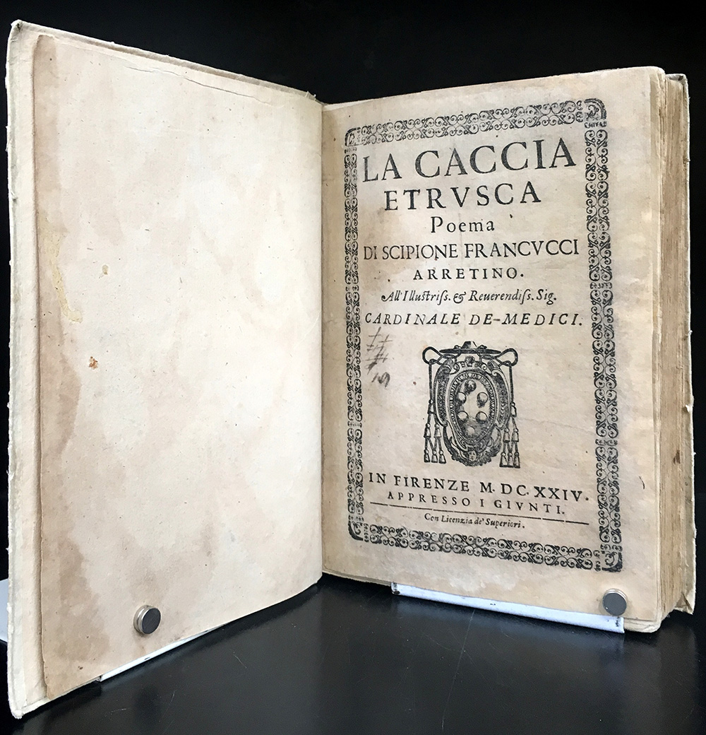 FRANCUCCI Scipione. La caccia etrusca poema. Firenze: Giunti, 1624. 4to,...