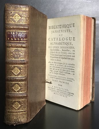 [GIANSENISMO] Bibliotheque janseniste ou Catalogue alphabetique des principaux livres jansenistes, Bruxelles: Ertetevens, 1739. 12mo, 2 voll. Legatura coeva in piena pelle con titiolo e decori in oro al dorso. Interessante bibliografia delle opere e degli scrittori Giansenisti. Non collazionato e difetti da esaminare.
